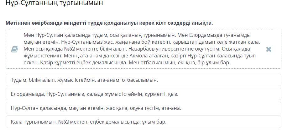 Нұр-Сұлтан қаласында, мақтан етемін, жас қала, оқуға түстім, ата-ана.