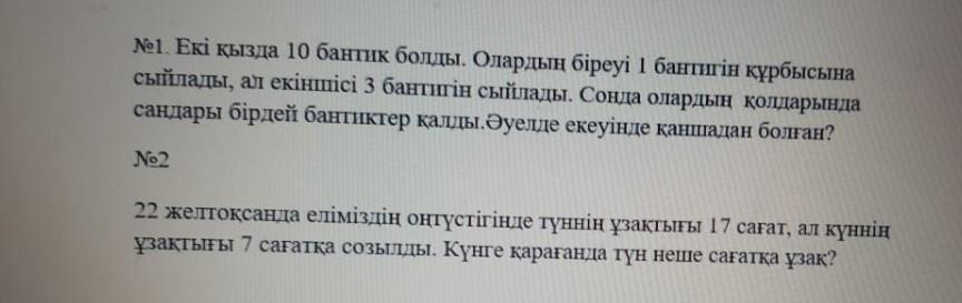 Ответ:1.екшнши кизде алты бантик болган ал 1 кизде 4 бантик болган.