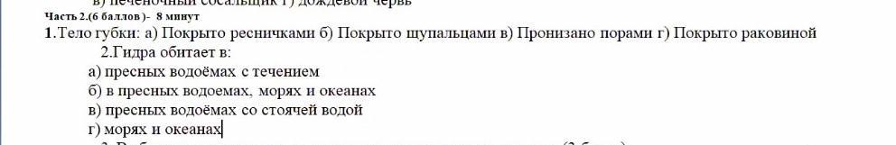 2) Класс Hydrozoa примечателен тем, что в нём встречаются пресноводные формы, а именно род Hydra ( гидра ). Полипы Гидры прикрепляются к субстрату при помощи щупальцев, потому течение в водоёме -- это крайне нежелательное явление.