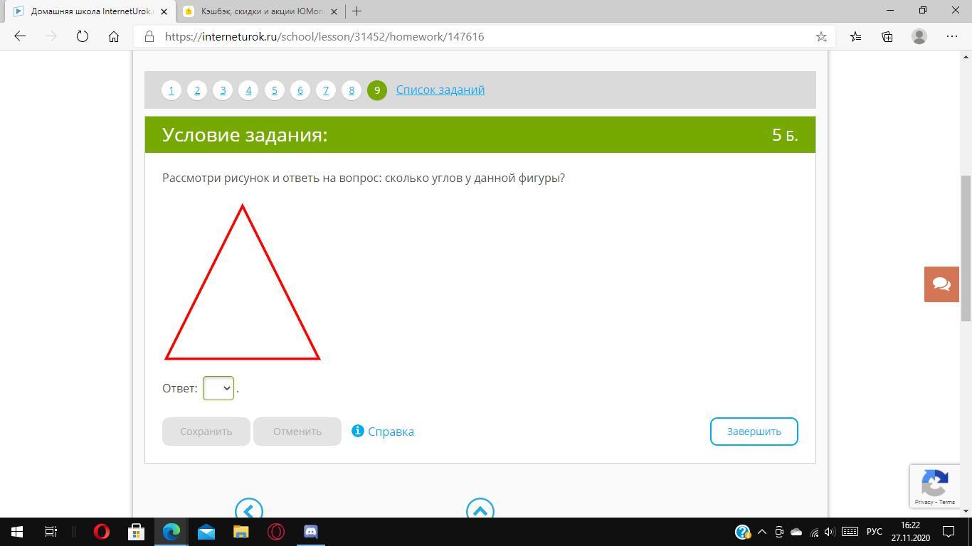 На рисунке изображён треугольник. Значит, углов у него 3