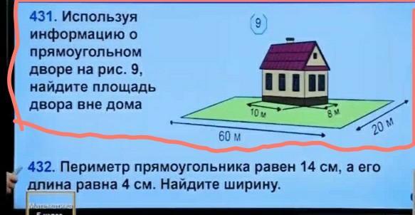 Используя информацию о прямоугольной дворе на рис 9, найдите площадь. двора внедома