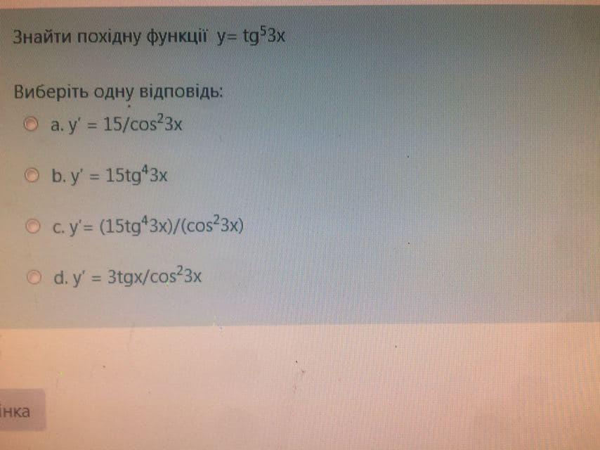 c. y' = 15tg^4 3x/ cos^2 3x