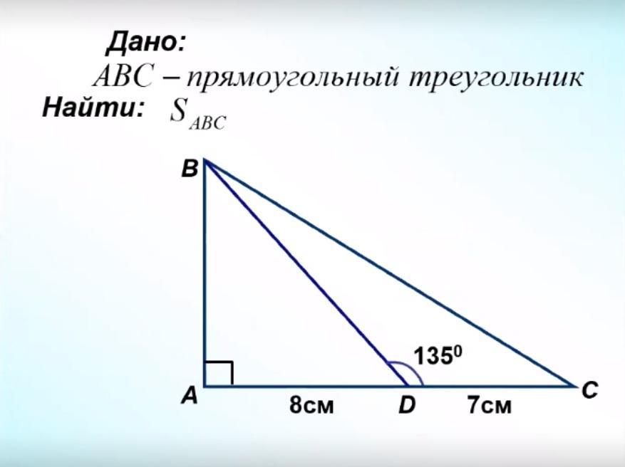 S(ABC)=AB*AC/2=8(8+7)/2=8*15/2=60cм²