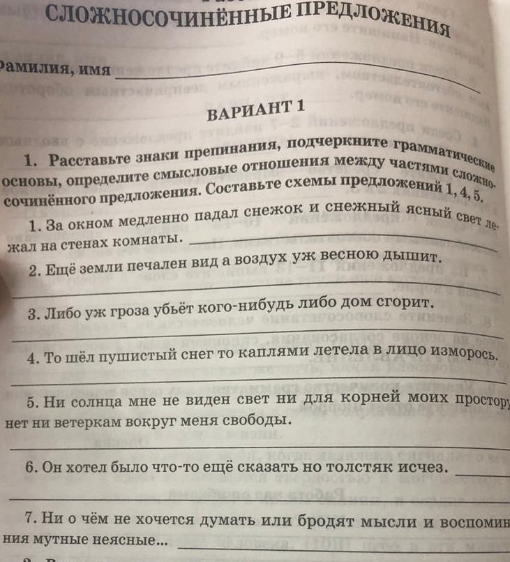 7.Ни о чём не хочется думать, или бродят мысли и воспоминания мутные, неясные...(1 гр. осн. сказ. не хочется думать 2 гр. осн. подл. мысли и воспоминания сказ. бродят)