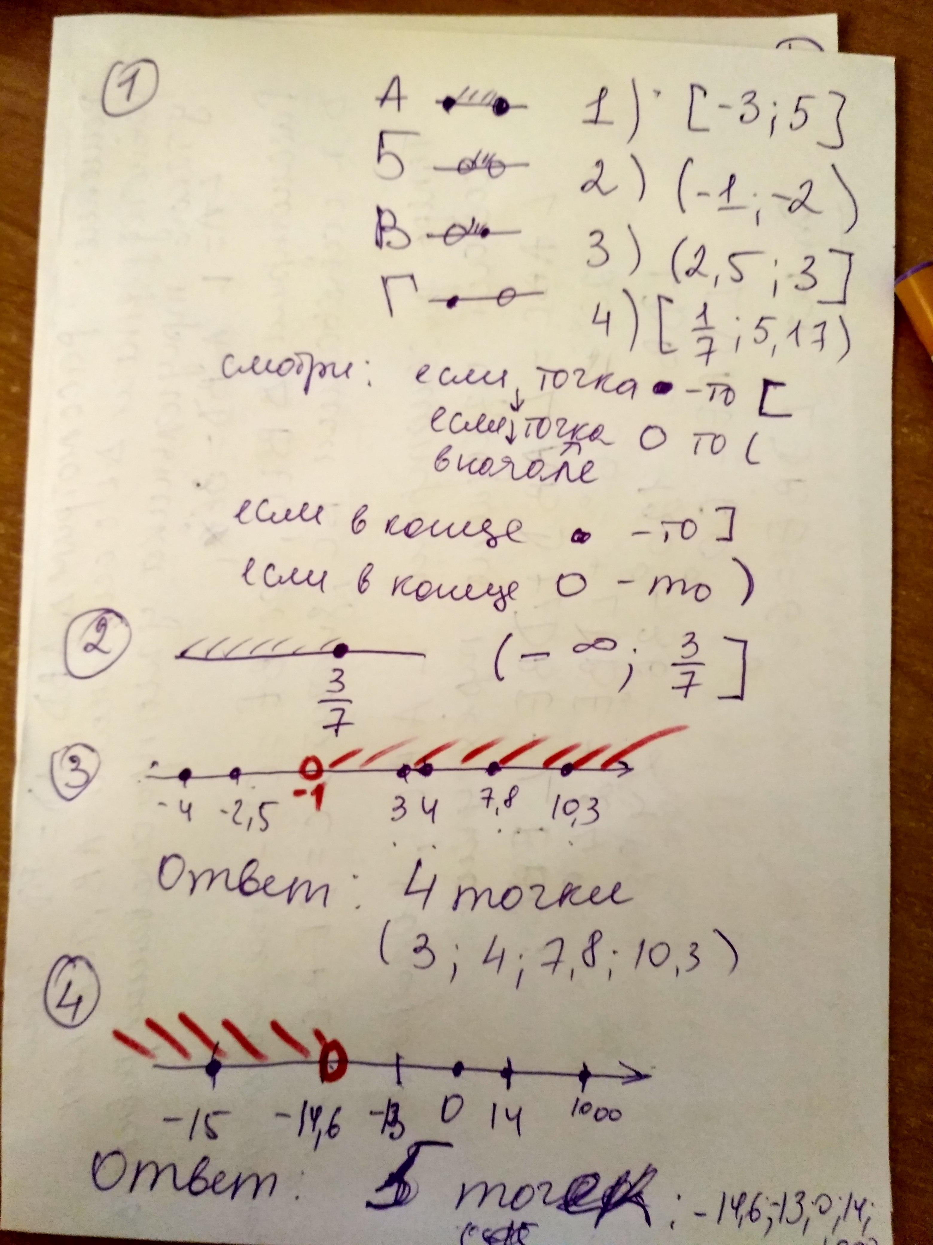 если пустая точка( то не принадлежит этому отрезку и знаки математические > < ,"Больше" или "меньше")