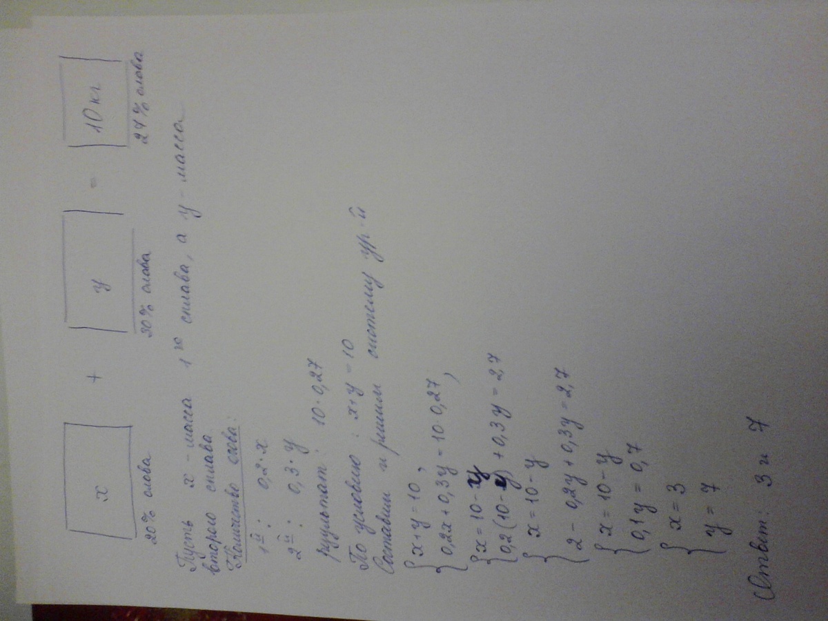 Один сплав содержит 20%, а другой – 30% олова. Сколько килограммов первого и второго сплавов нужно взять, чтобы получить 10 кг 27%-го сплава олова?