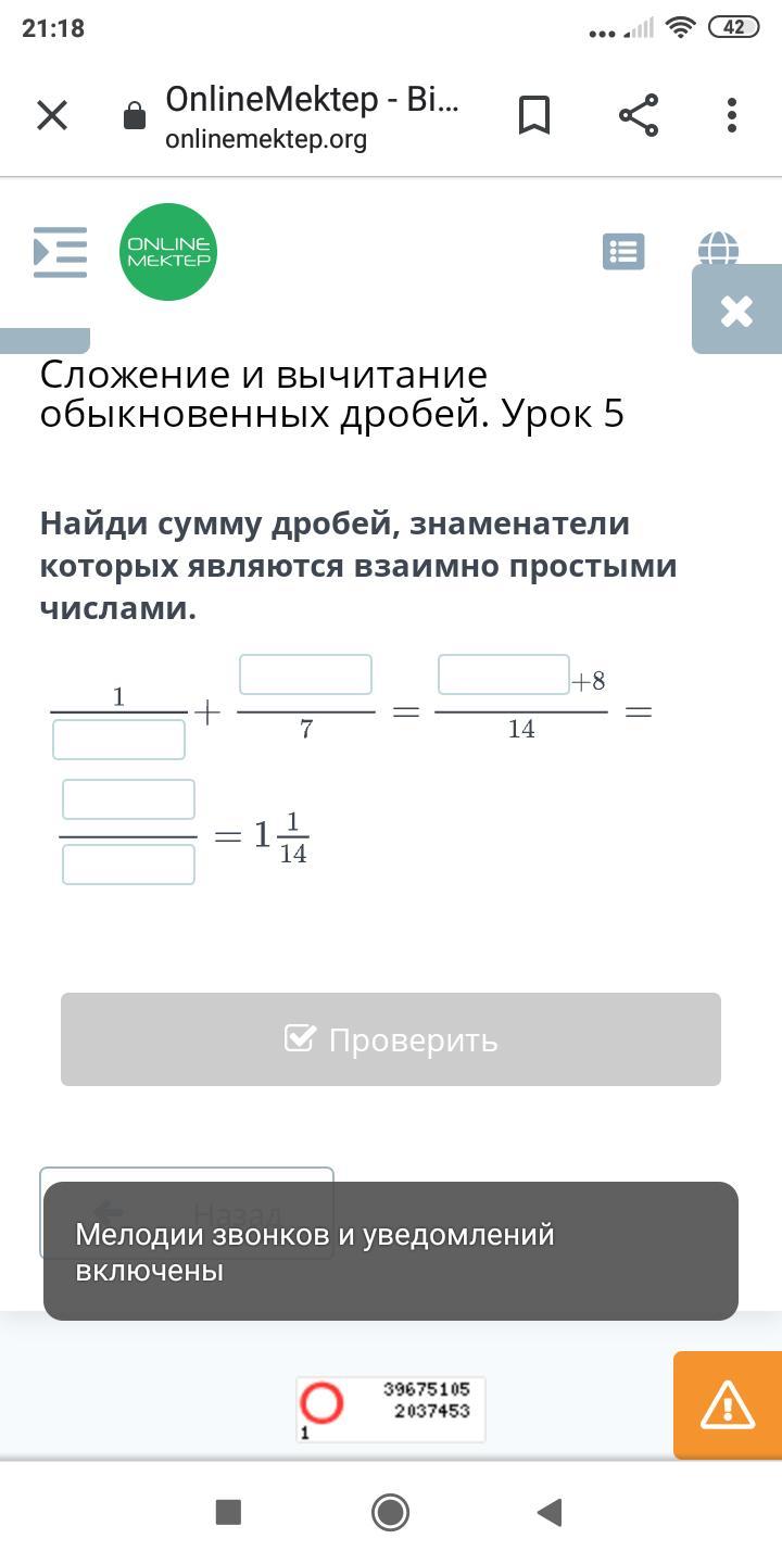 1\7 + 6\7 = 7+8\14 = 1 1\14