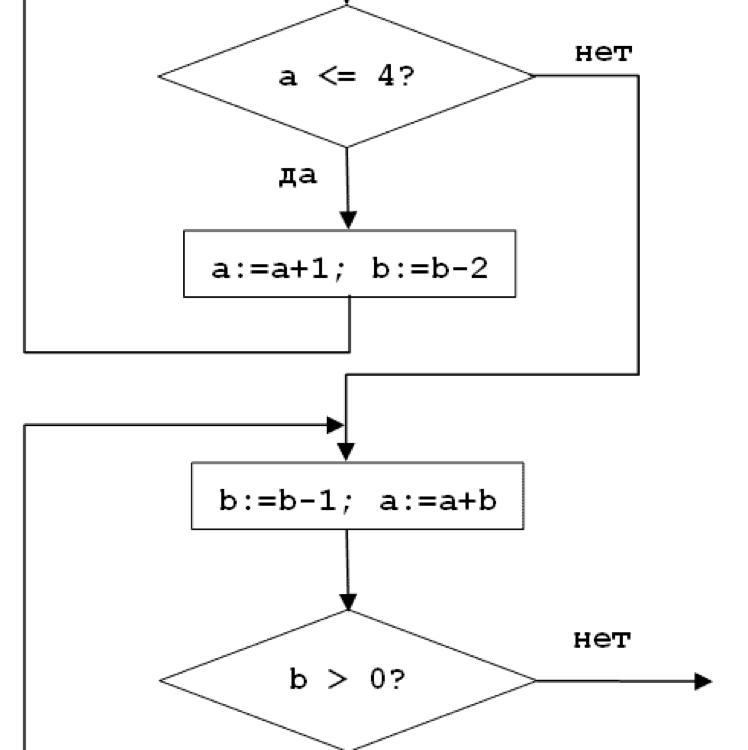 Определите значения переменных после выполнения фрагмента алгоритма.вверху написано a:=1 b:=11