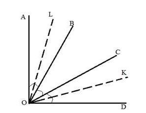 Прямой угол двумя лучами разделён на три равных угла, AOD=90 градусов. Найти угол между биссектрисами крайних углов AOB и COD. Решить по "схеме" дано → найти → решение → ответ. (картинка)