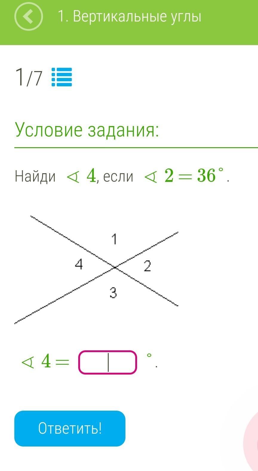 ∠2=∠4 (т.к. вертикальные) → ∠4=36