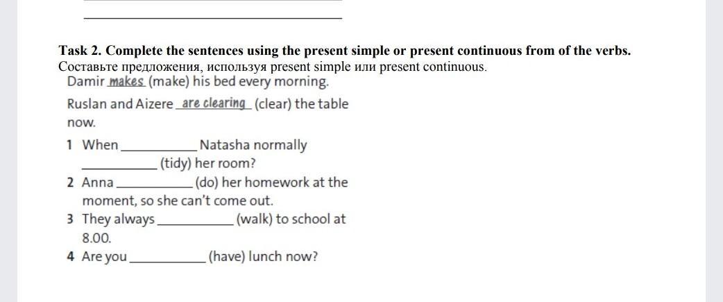 Task 2. Complete the sentences using the present simple or present continuous from of the verbs.