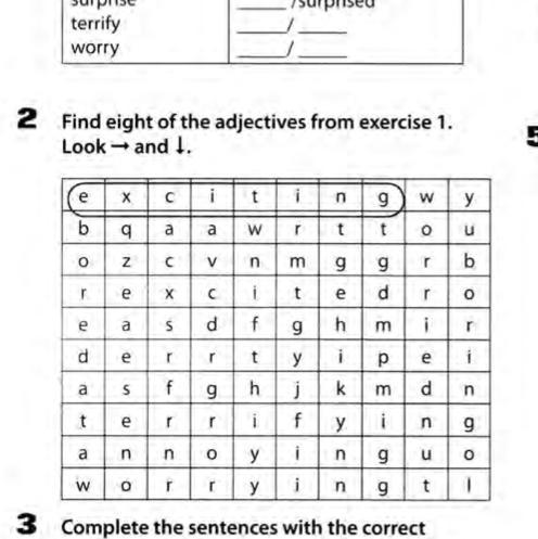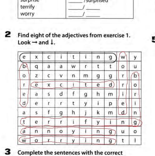 bored boring worried(вертикаль), worrying annoy annoying terrifying(горизонталь)