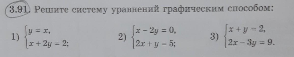 3.91. Решите систему уравнений графическим способом: