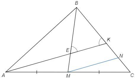 На медиане ВМ треугольника АВС взяли точку Е. Прямая АЕ пересекает сторону ВС в точке
