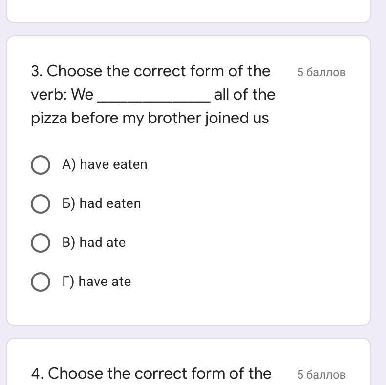 правильный ответ - we have eaten all of the pizza before my brother joined us