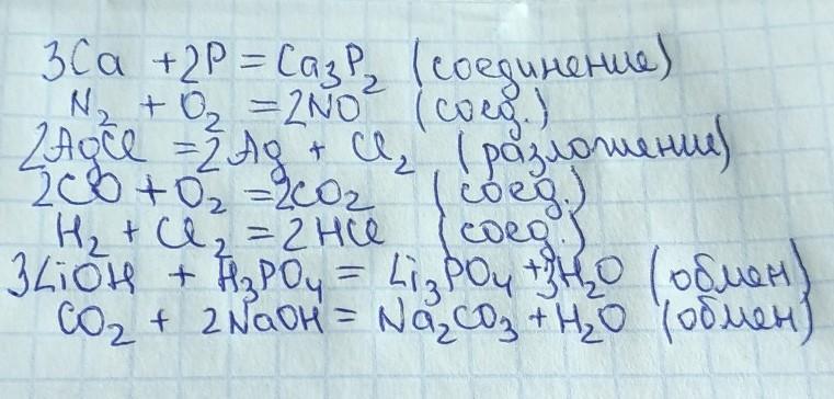 Расставьте коэффициенты, преобразовав схемы в уравнениях реакции и определите тип химической реакции