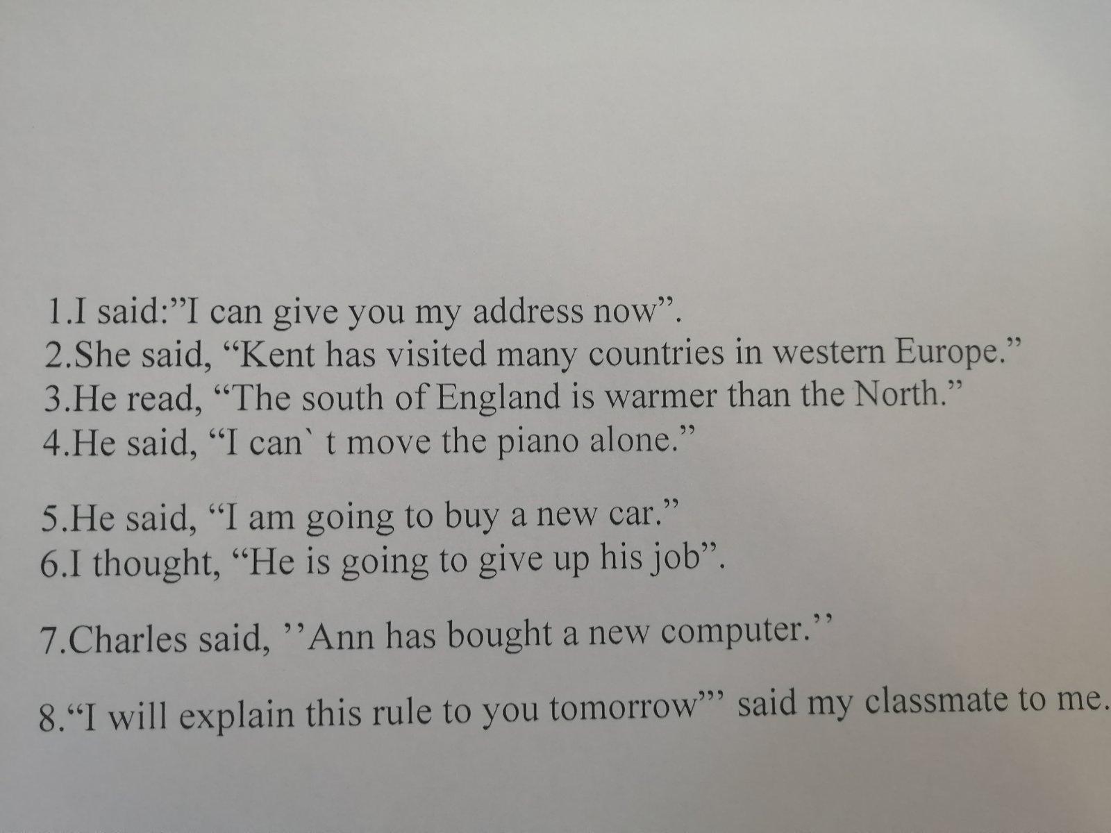 7. Charles said that Ann had bought a new computer.