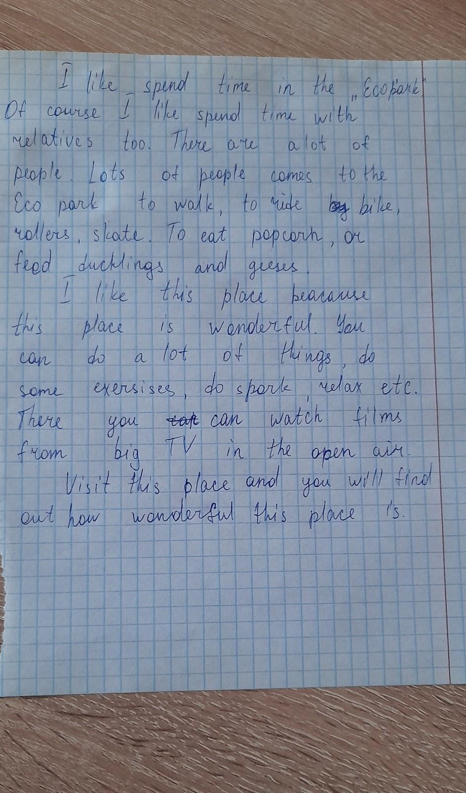 1)Write an essay about the place where you like to spend time (60-80 words)
