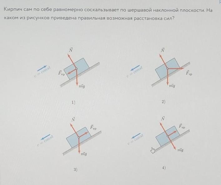 Кирпич сам по себе равномерно соскальзывает по шершавой наклонной плоскости. На