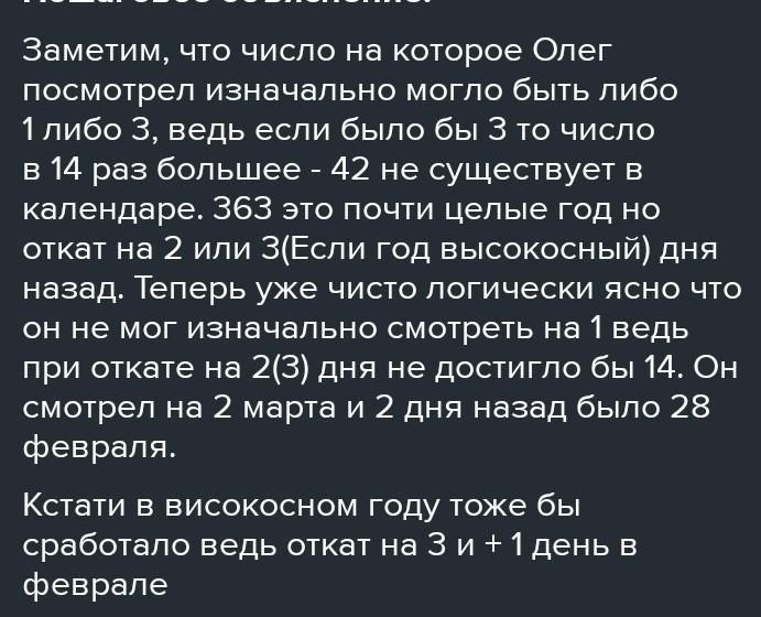 1)Посмотрев на калндарь ,Олег заметил:"через 363 дня будет в 14 раз больше число, чем сегодняшнее".В каком месяце и в какой день Олег смотрель на календарь?