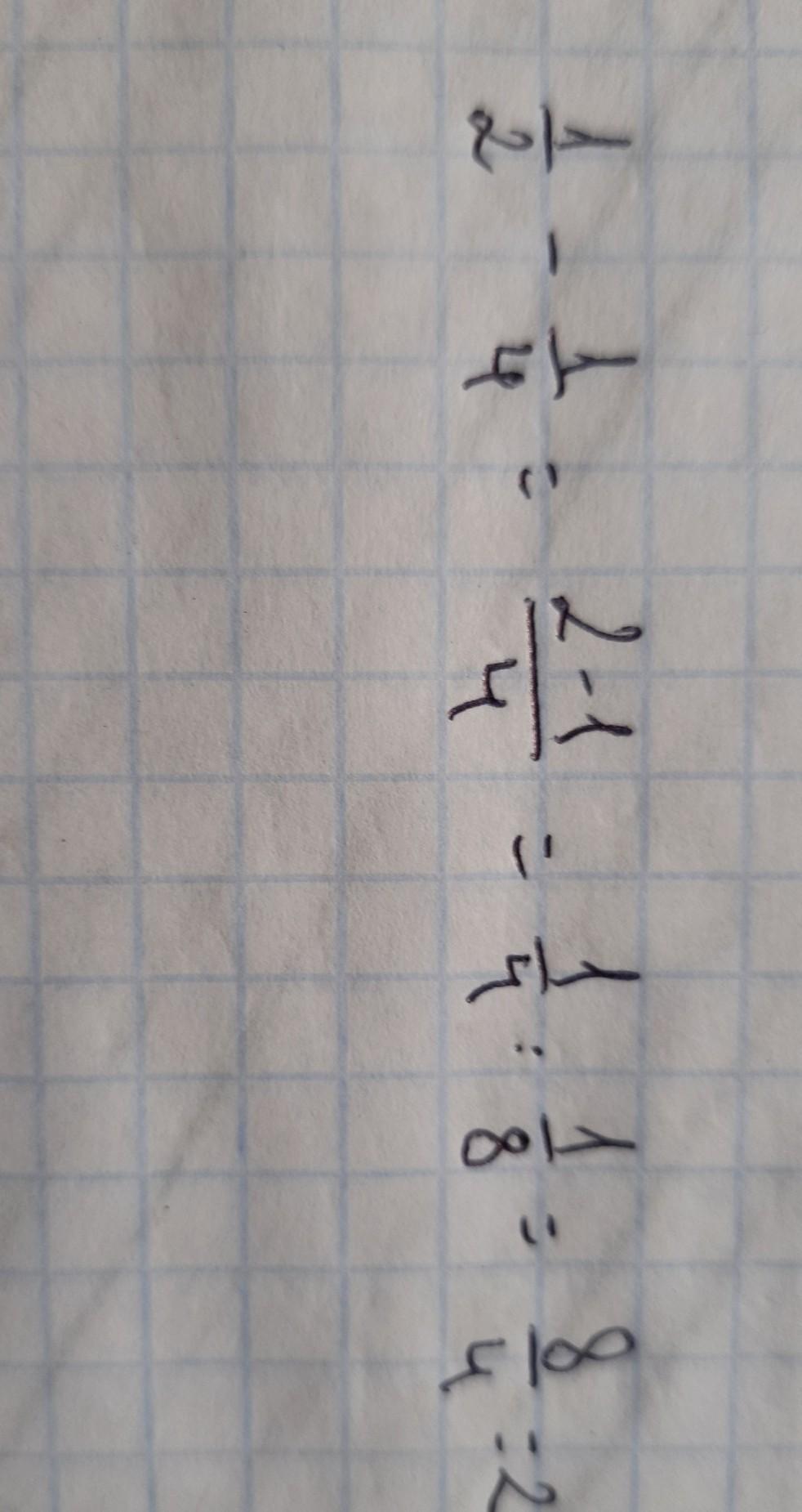 1/2 - 1/4 находим общий знаменатель 4. 2-1/4=1/4. 1/4:1/8=1/4×8/1=2