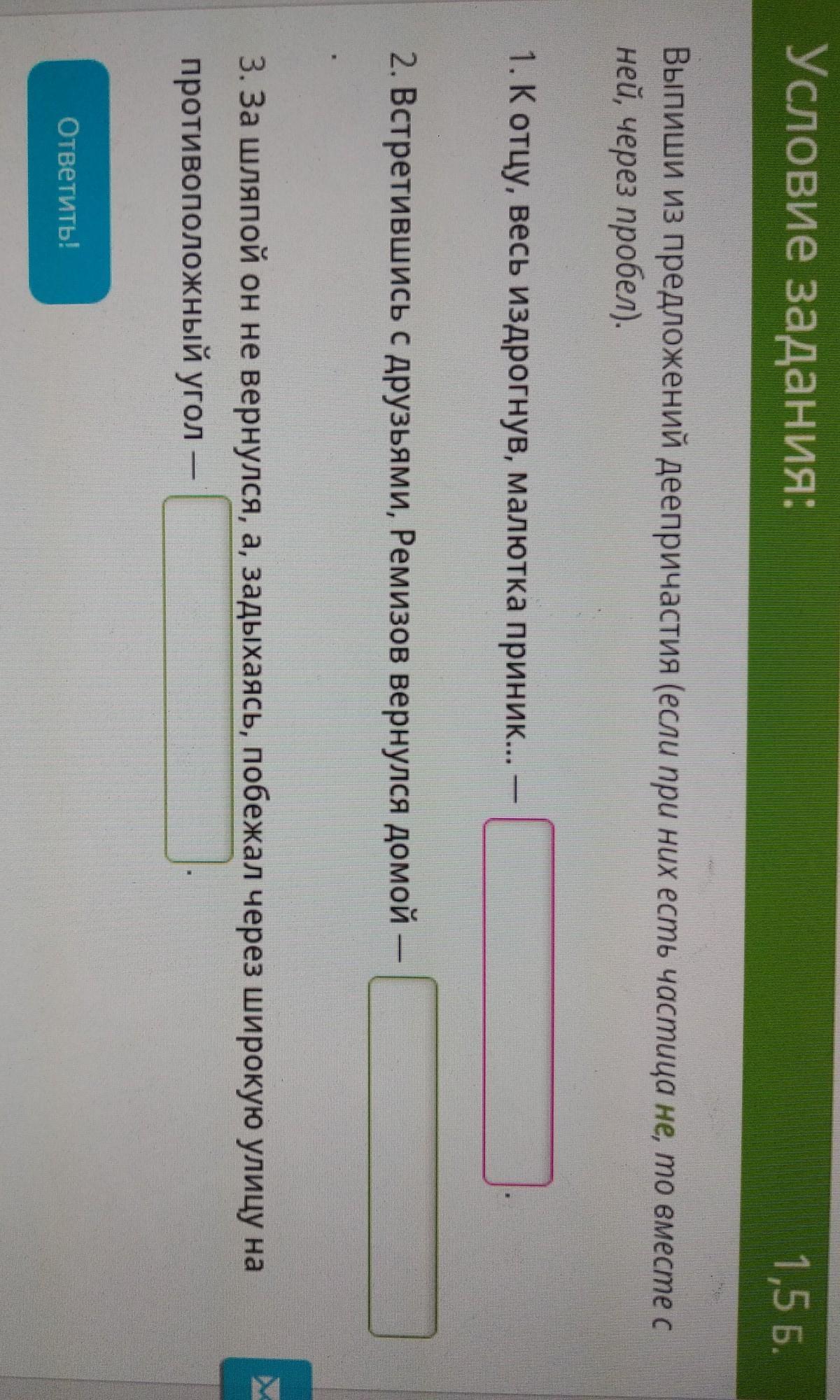 Деепричастие — это самостоятельная часть речи (или особая форма глагола), которая имеет значение добавочного действия при основном и отвечает на вопросы что делая? что сделав? как?
