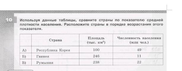 Пример: Румыния: 22 000 000 чел./238 км(238 000 м) = 92,4 чел./ кв.км