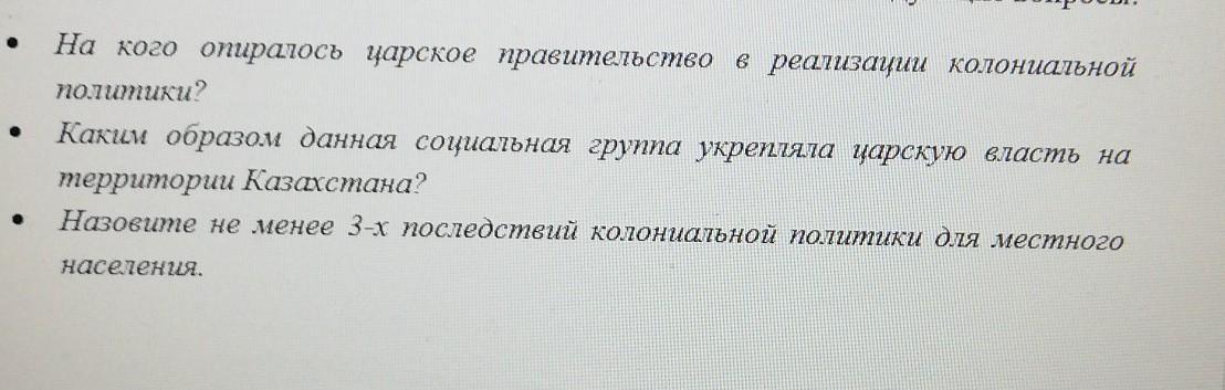 1)Колониальная политика царизмы в Каз-не