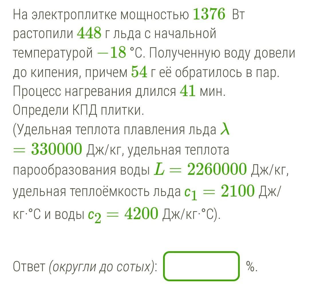 Q1 = c1m1(tп - t1) = 2100 * 0,448 * 18 = 16 934,4 Дж