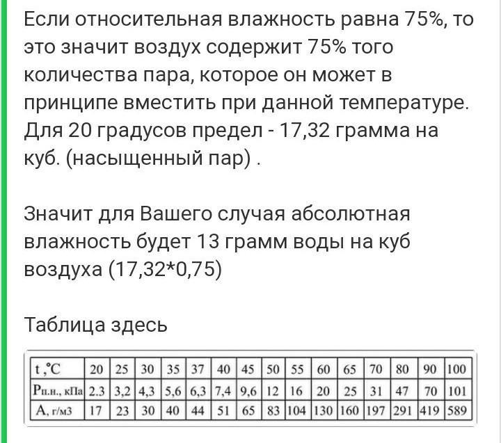 Какова абсолютная влажность воздуха при 25 °C если относительная влажность воздуха равна 75%.