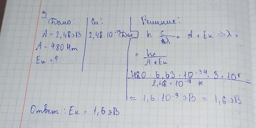 2. Работа выхода для бария равна 2.48 эВ. Чему равна максимальная