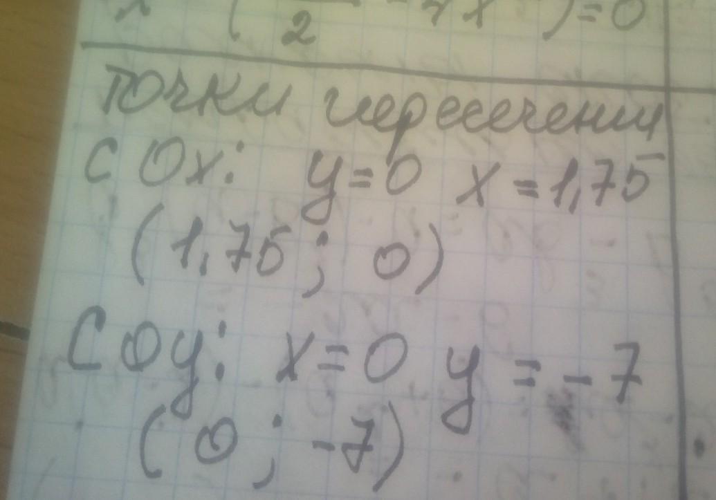 Знайдіть, не виконуючи побудови, точки перетину з осями координат графіка функції: 1) f(x) = 4x - 7 ;