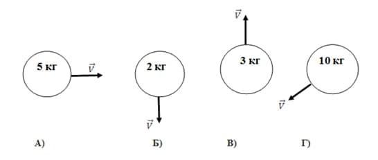 Величина кінетичної енергії залежить від маси тіла m (кг) і швидкості v (м/с). Кінетична енергія тіла дорівнює половині від добутку маси на квадрат швидкості. Тіло з більшою масою має більшу кінетичну енергію.