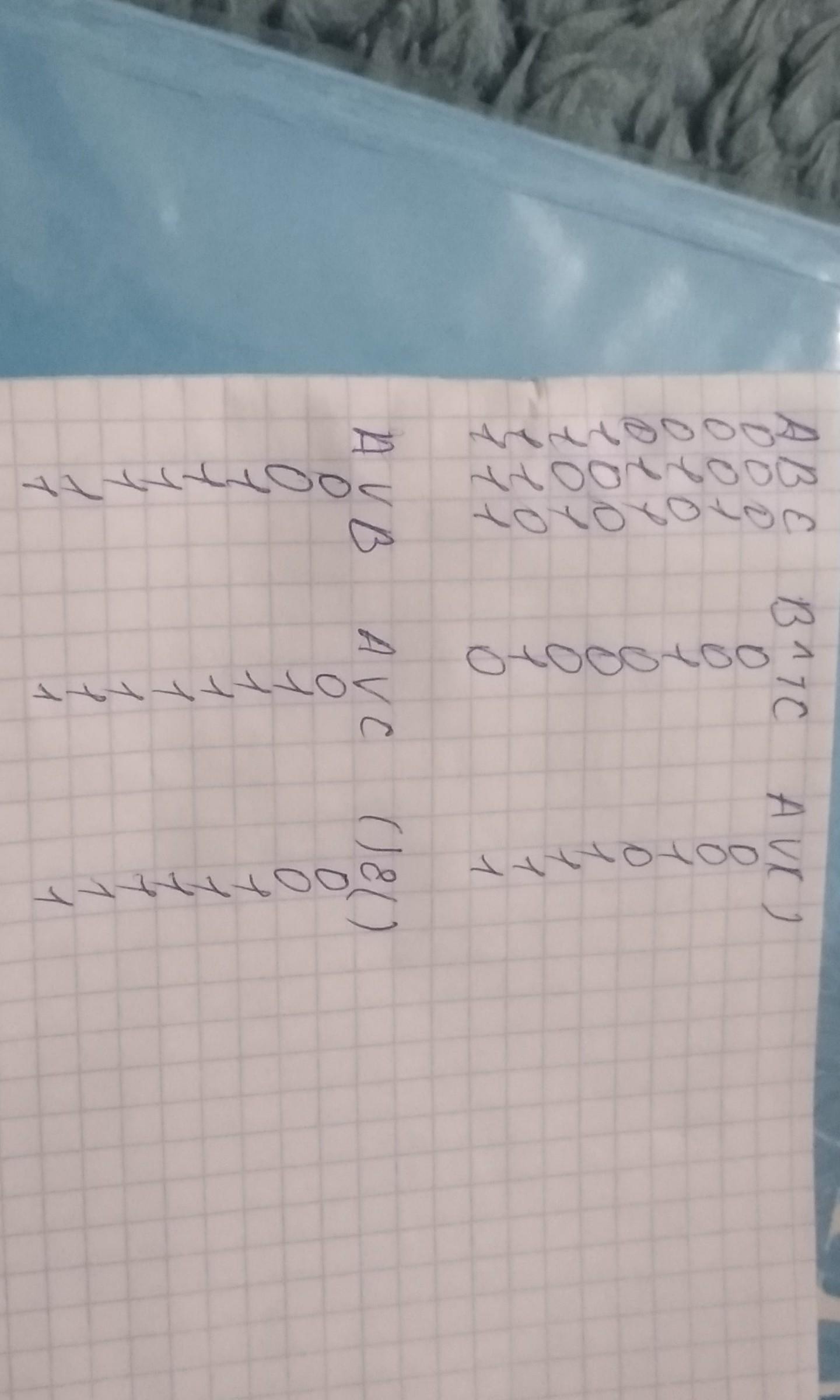 2. Постройте таблицу истинности и логическую схему для функции F=Av(B^¬C)