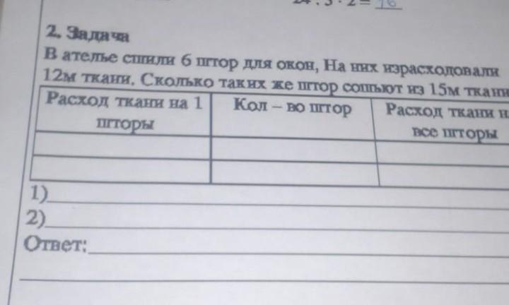 В ателье сшили 6 штор для окон.На них и расходовали 12 метров ткани.Сколько таких же штор сошьют из 15 м ткани?