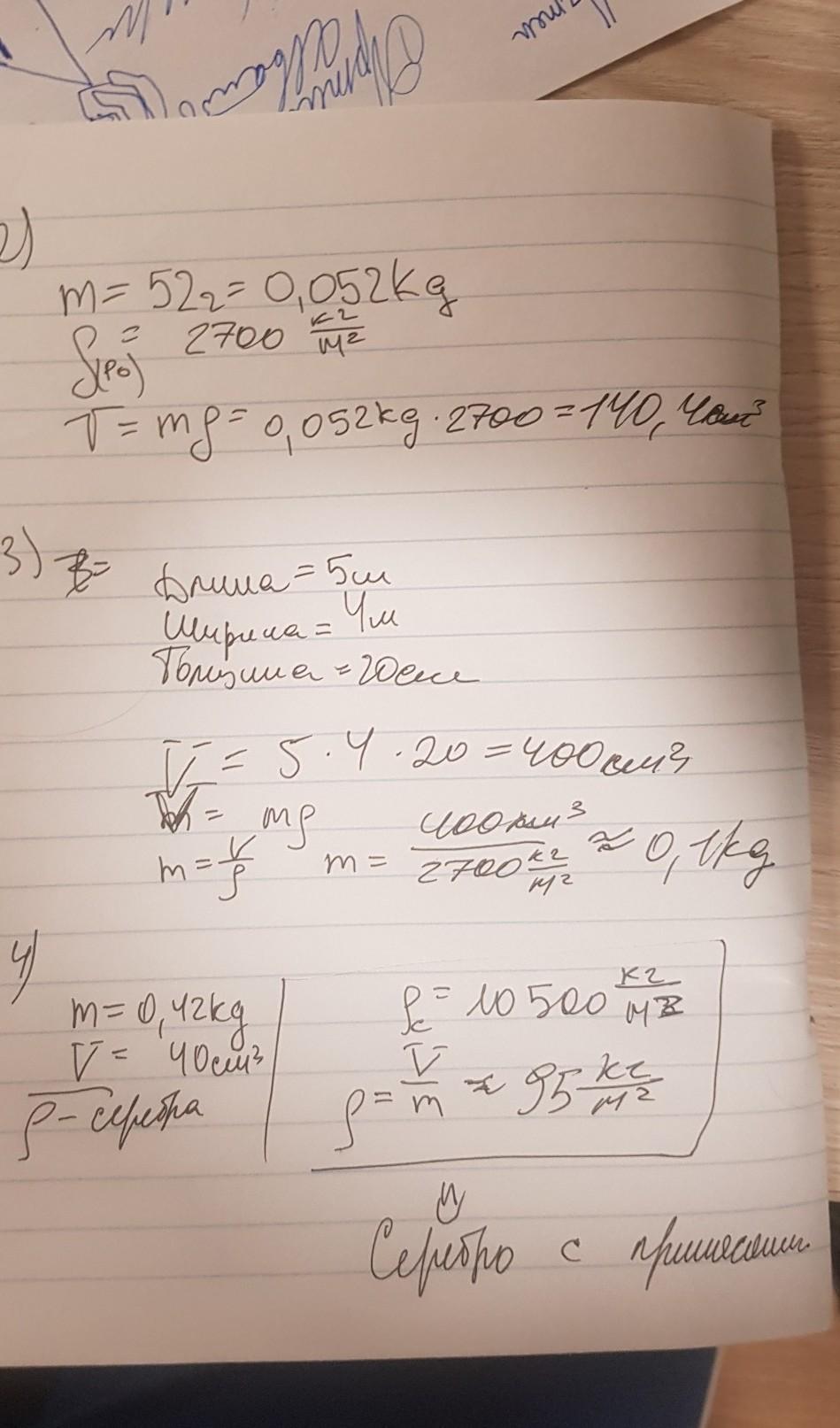 4)Серебрянвй слиток имеет массу 0,42 кг.Объём слитка 40 см3.Этот слиток изготовлен из чистого серебра или есть примеси?пожалуйста все с решениями