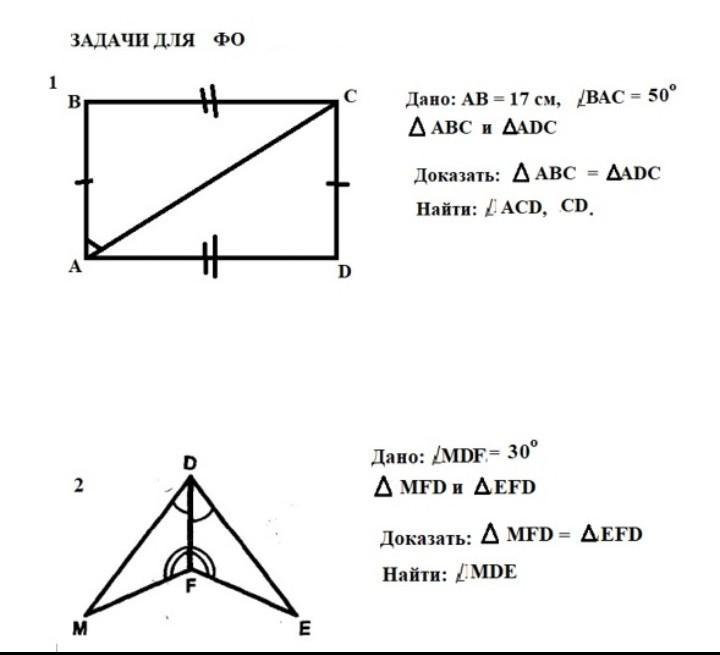 Треугольник MFD=треугольник EDF (по двум сторонам и углу между ними)