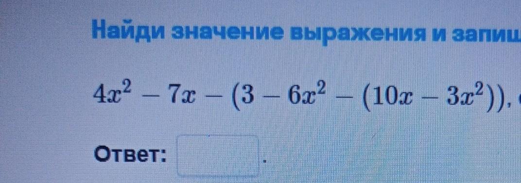 4x² - 7x - (3 - 6x² - (10x - 3x²)) = 4x² - 7x - (3 - 6x² - 10x + 3x²) =