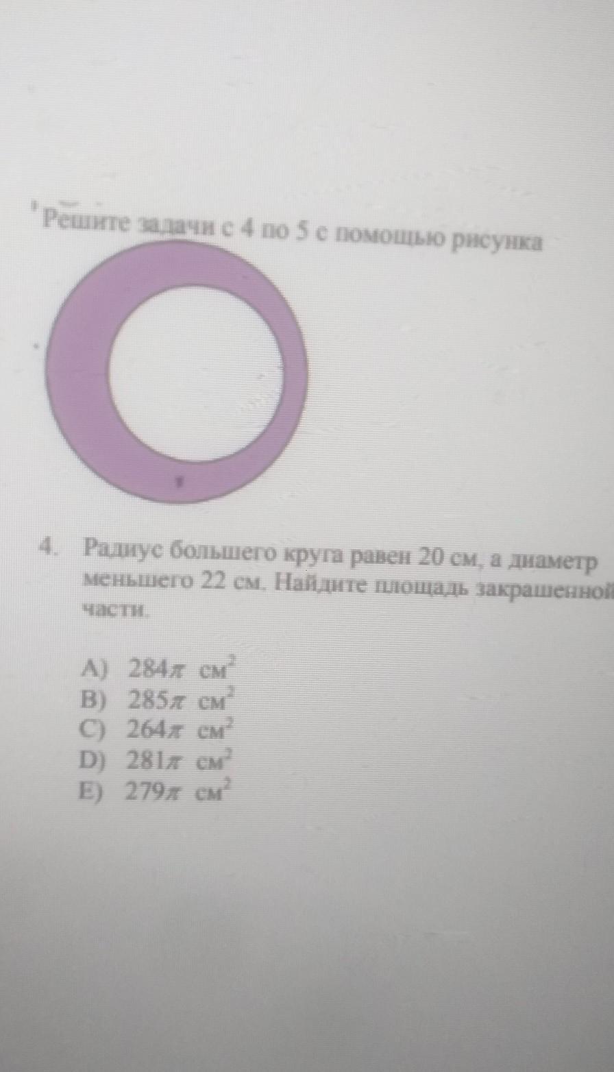 S(большой) - S(малый) = 400Пи -121Пи = 279Пи = ответ Е