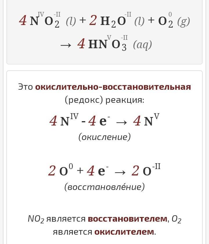NO2+O2+H2O→HNO3.Сумма коэффициентов реакций Окисление и восстановление?