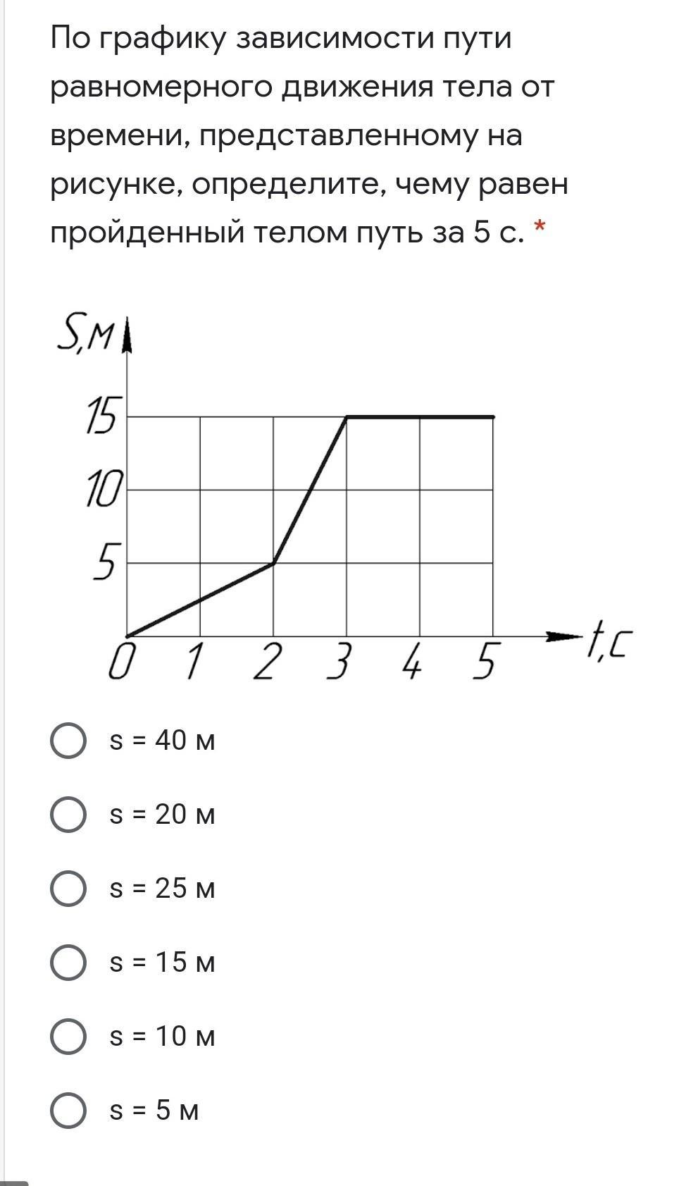 внизу время, слева - путь. На графике, видно, что он равен 15ти м