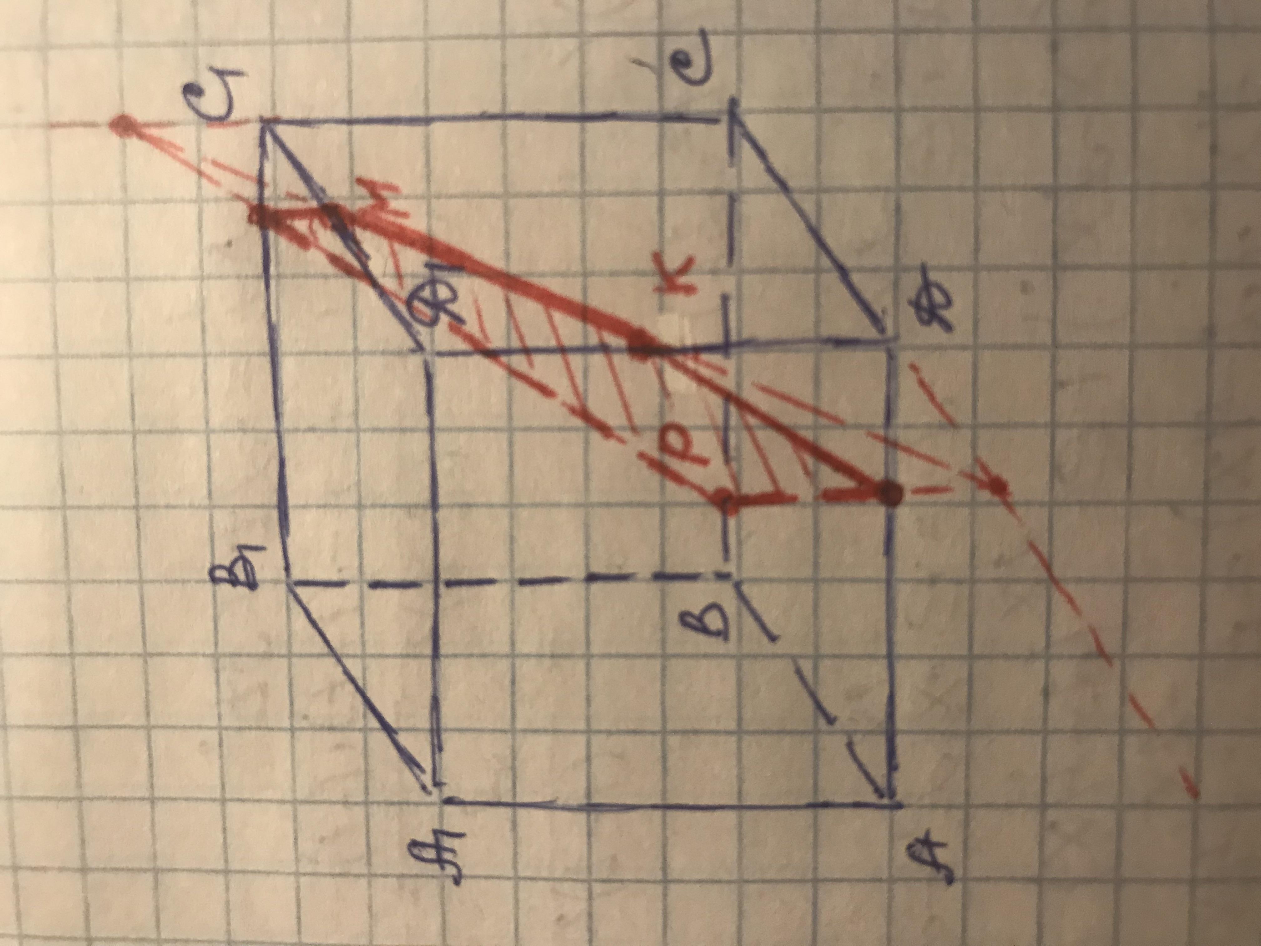 проходит через точки М, Р и К, которые принадлежат соответственно ребрам С1D1, ВС и DD1