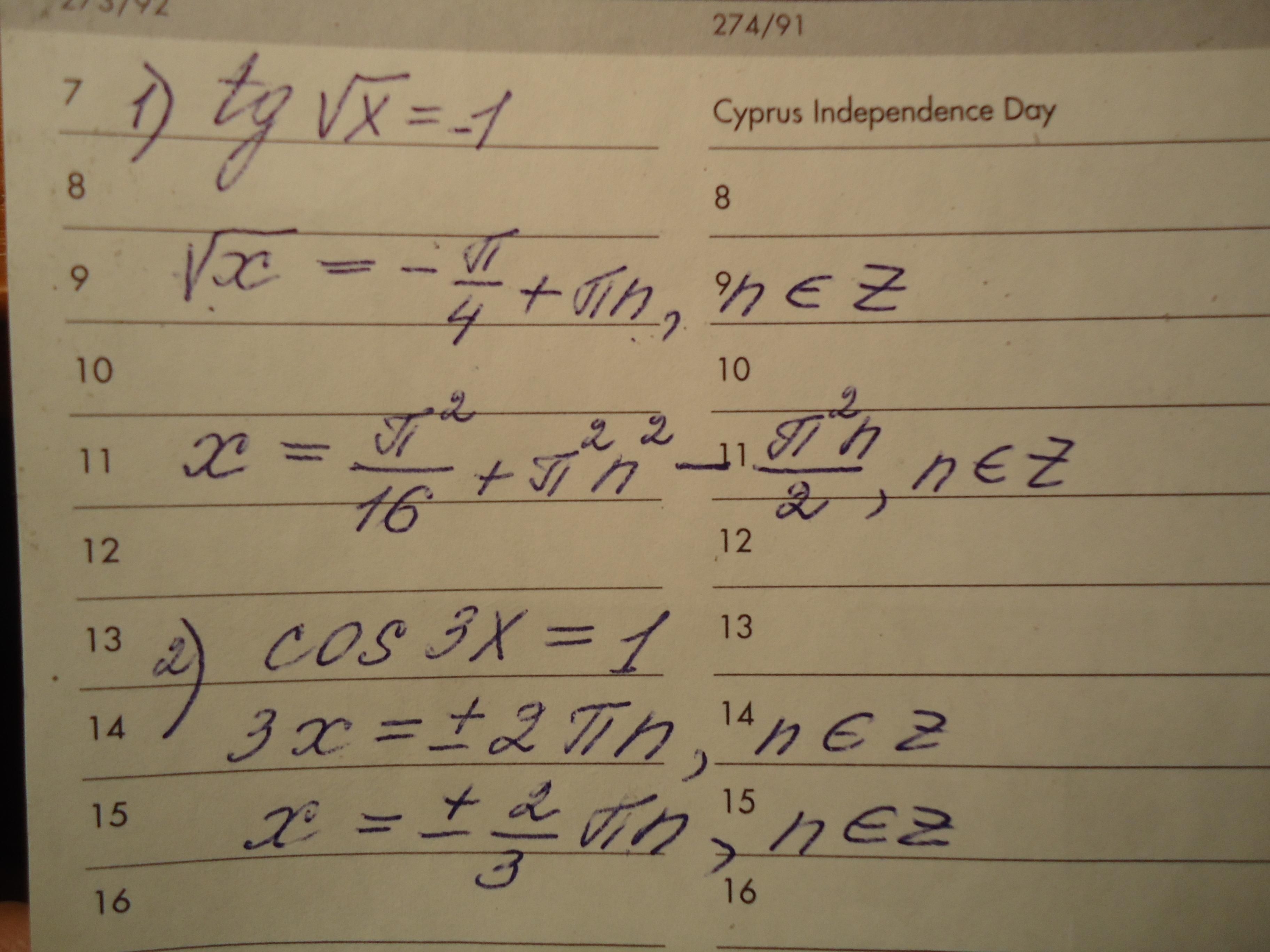Ответ: 2) π²(1/16+n²-n/2), n из Z 1) ±2/3 πn, n из Z.