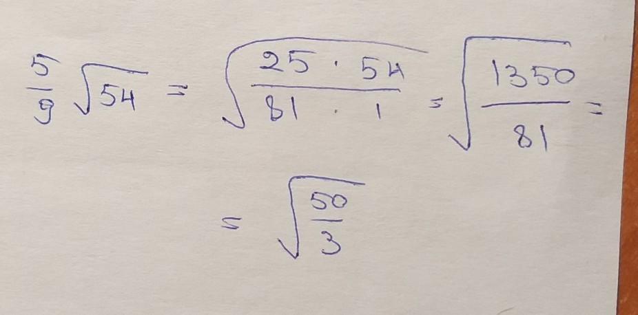 возводим 5/9 в квадрат и заносим под корень, там всё под одну дробь и сокращаем