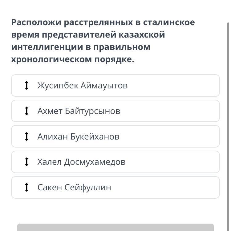 расположить в правильном хронологическом порядке расстрелянных в сталинское время представителей казахской интеллигенции.