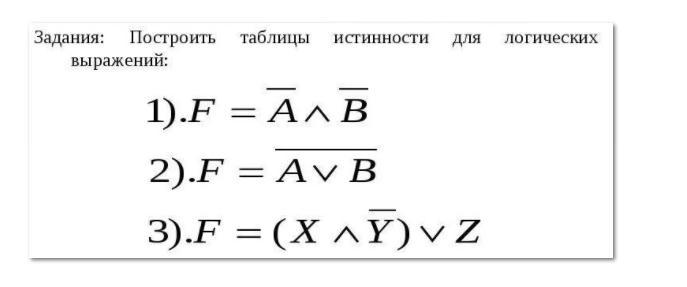 2) НЕ (¬, черта над выражением) - значение противоположно исходному высказыванию