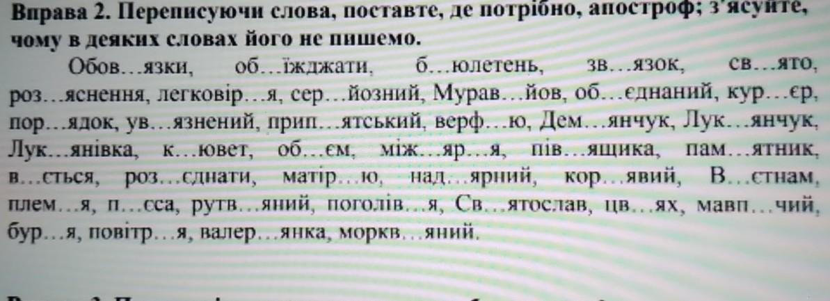 Переписуючи слова, поставте, де потрібно, апостроф; з'ясуйте,