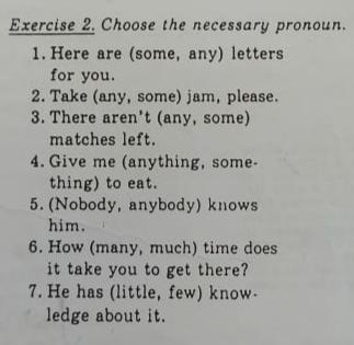 1 some 2some 3any 4 something 5 Nobody 6 much time 7 little