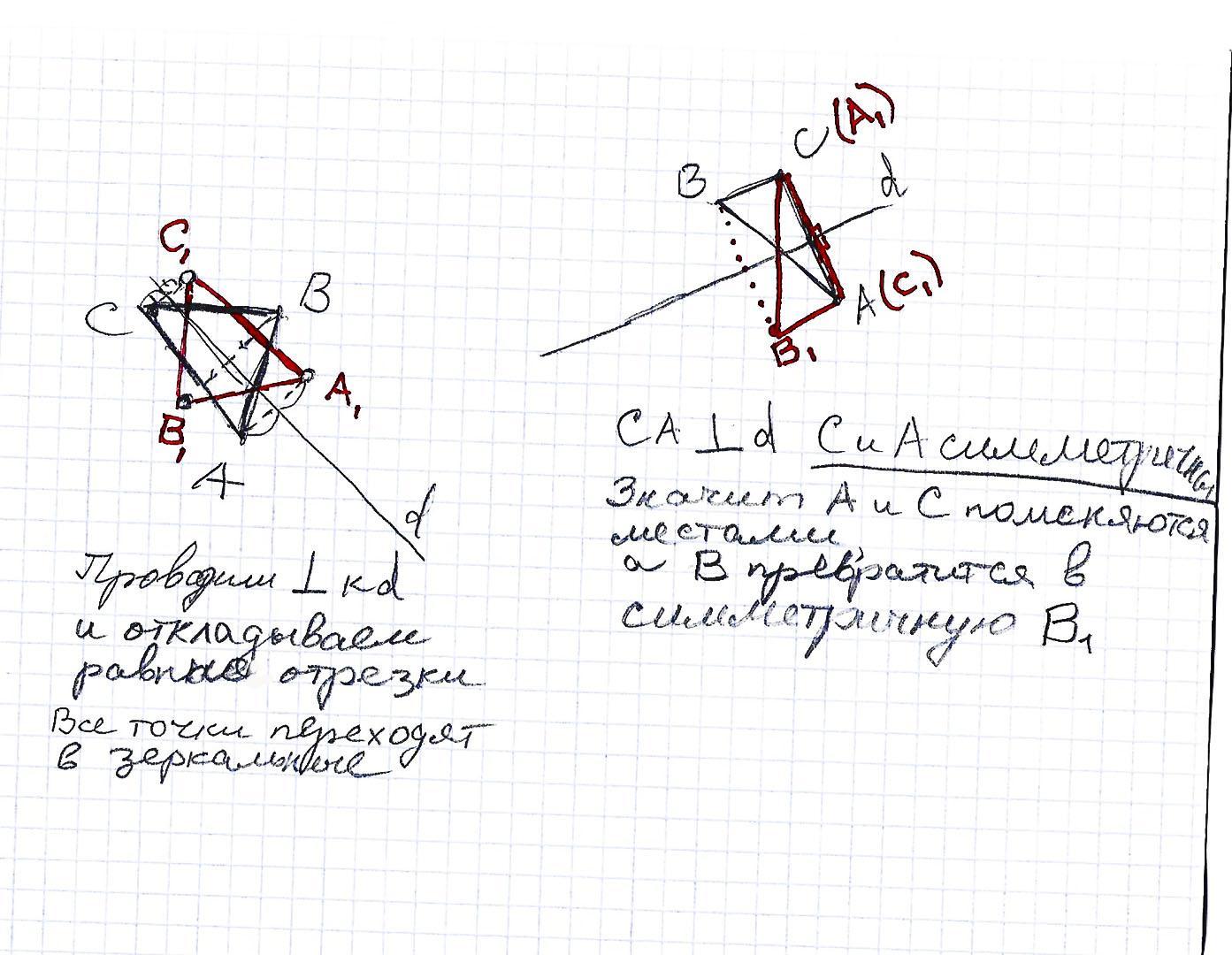 Изобразите треугольник симметричный треугольнику АВС относительно прямой d