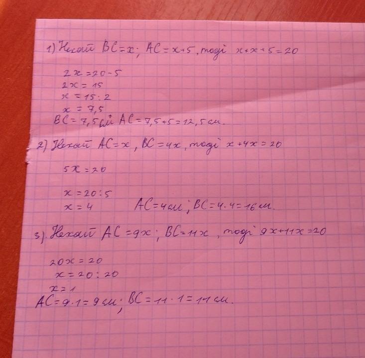 Точка C - внутрішня точка відрізка AB, довжина якого дорівнює 20 см. Знайдіть відрізки AC і BC якщо
